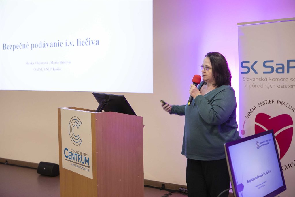 Jednou z piatkových prezentácií na konferencii bola aj prednáška sestry z Oddelenia anestéziológie a intenzívnej medicíny UNLP Košice, Mgr. Slávky Olejárovej, ktorá sa zamerala na bezpečnosť intravenóznej terapie. „Bezpečné podávanie intravenózneho liečiva predstavuje kľúčovú súčasť kvalitnej ošetrovateľskej starostlivosti, pričom jeho správna realizácia priamo ovplyvňuje klinické výsledky, komfort pacienta a minimalizáciu rizík,“ uviedla na podujatí.